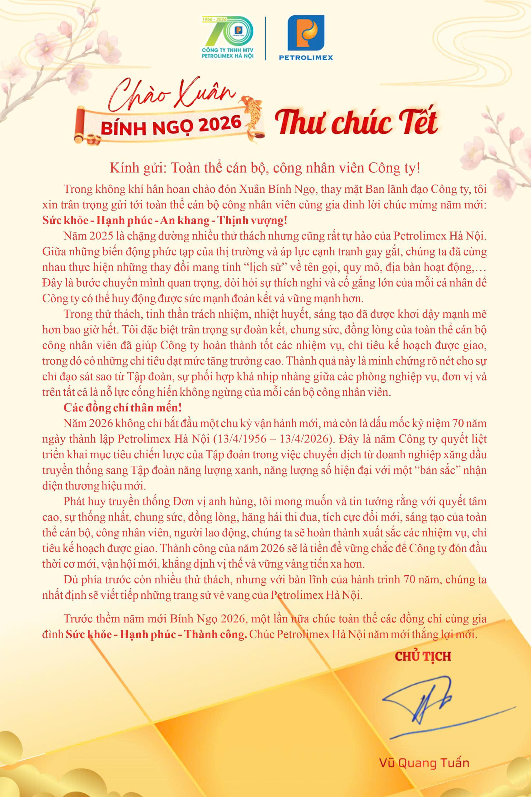 Thư Chúc Tết của Chủ tịch Công ty